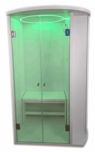 Die Kabinen sind äußerst effizient: geringer Stromverbrauch, kein Personalaufwand während der Anwendung und minimaler Materialbedarf (medizinisches Salz).